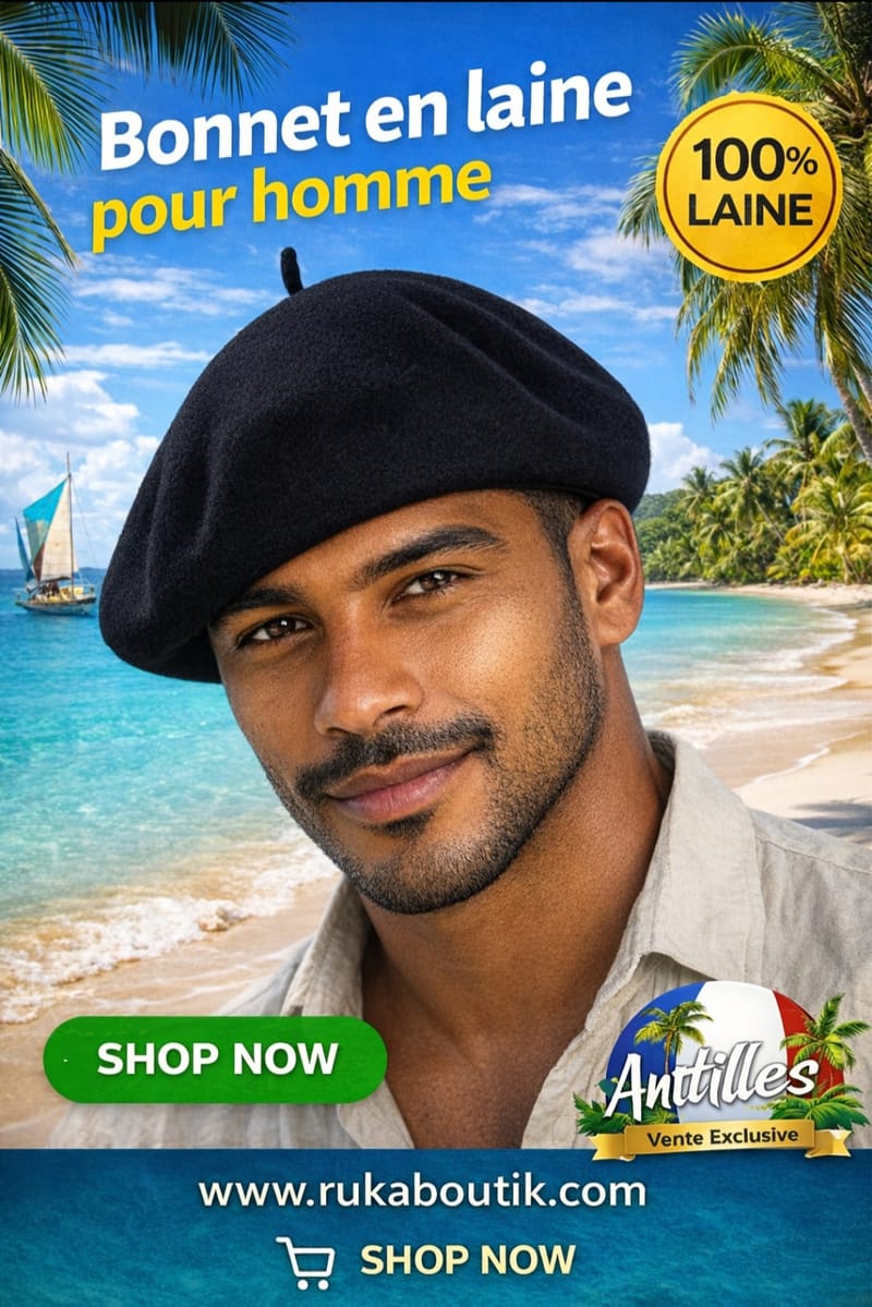 Adoptez l’élégance et le confort avec notre bonnet en laine pour homme ! Conçu à 100 % en laine de qualité, il garde votre tête bien au chaud tout en ajoutant une touche sophistiquée à votre style. Léger, résistant et idéal pour toutes les occasions, ce bonnet est l’accessoire incontournable des hommes modernes. Disponible en exclusivité sur www.rukaboutik.com�, faites le choix du style antillais chic et pratique !