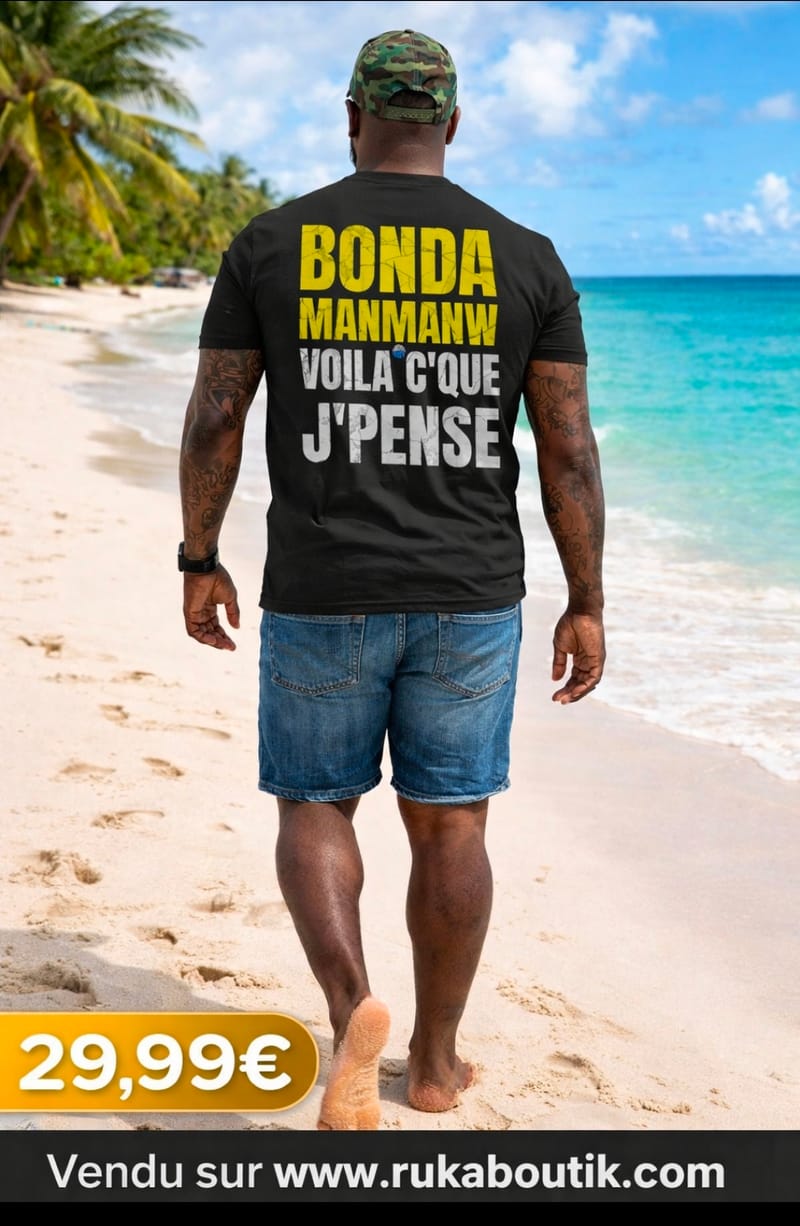 Affirme ton style avec ce t-shirt au message fort, inspiré de la culture antillaise. Confortable, résistant et tendance, il t’accompagne de la plage à la ville. Un look qui parle pour toi. TAILLES : S M L XL XXL XXXL