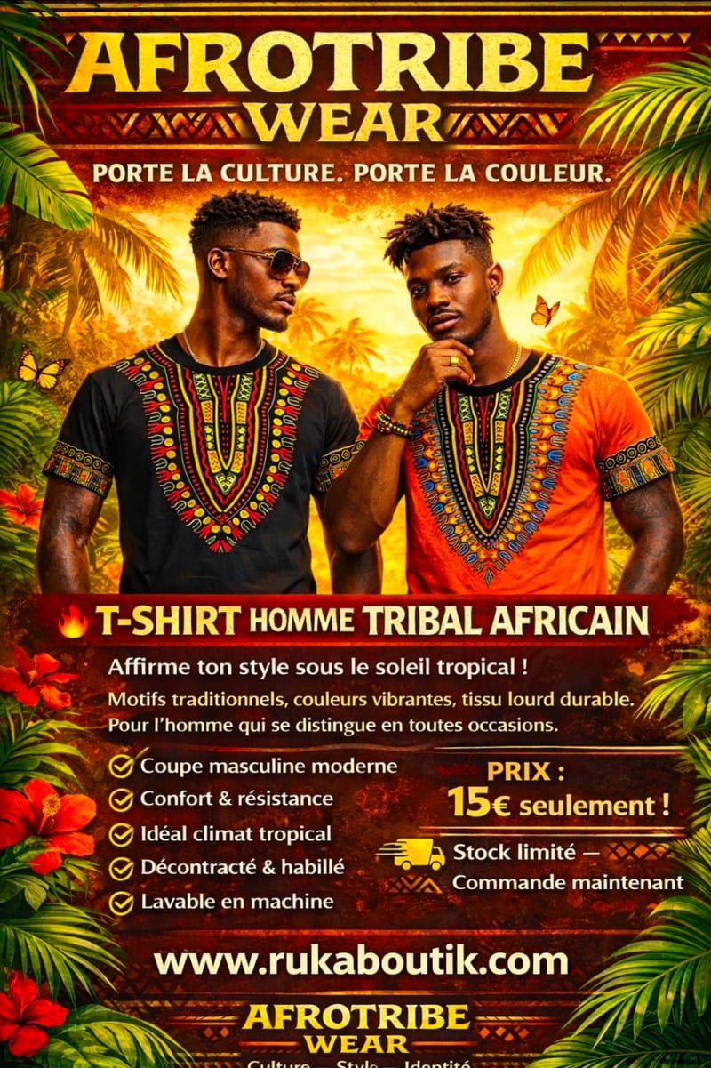 Affirme ton style avec ce t-shirt tribal africain aux couleurs vibrantes. Son tissu lourd et durable offre confort en climat tropical. Polyvalent, il se porte en sortie ou au quotidien. Un essentiel masculin qui valorise culture, identité et tendance urbaine.
